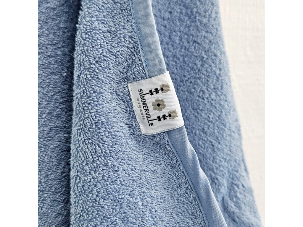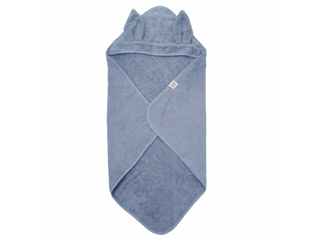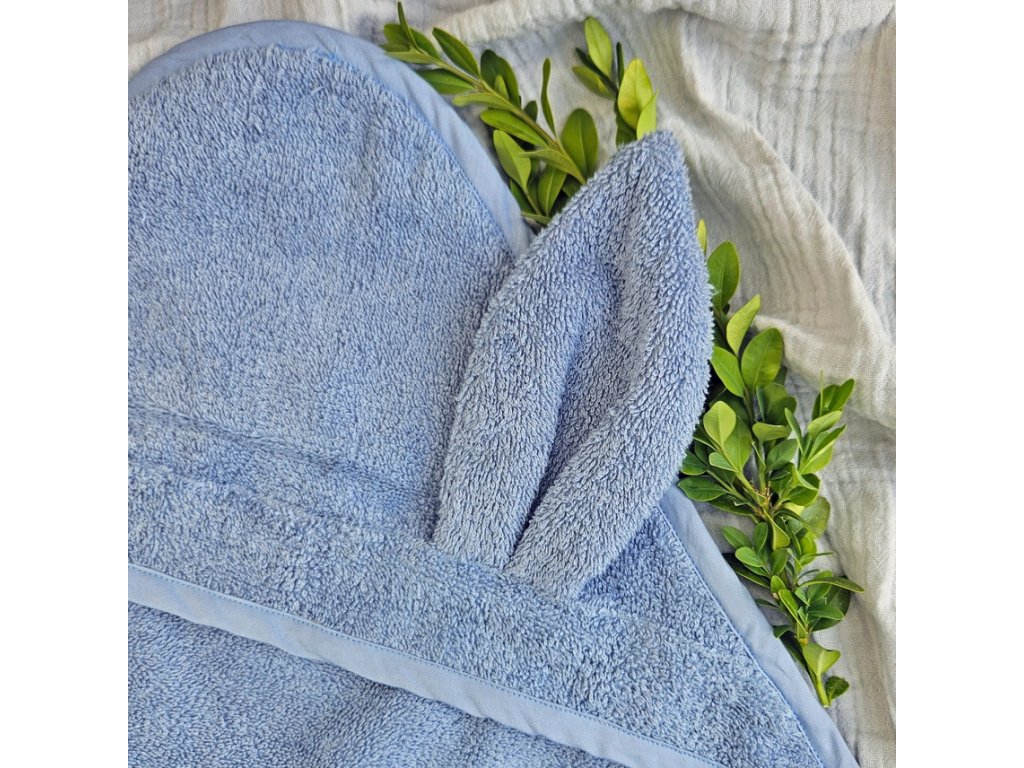 Detská osuška z organickej bavlny s kapucňou „zajačik“ 75×75 cm, modrá
