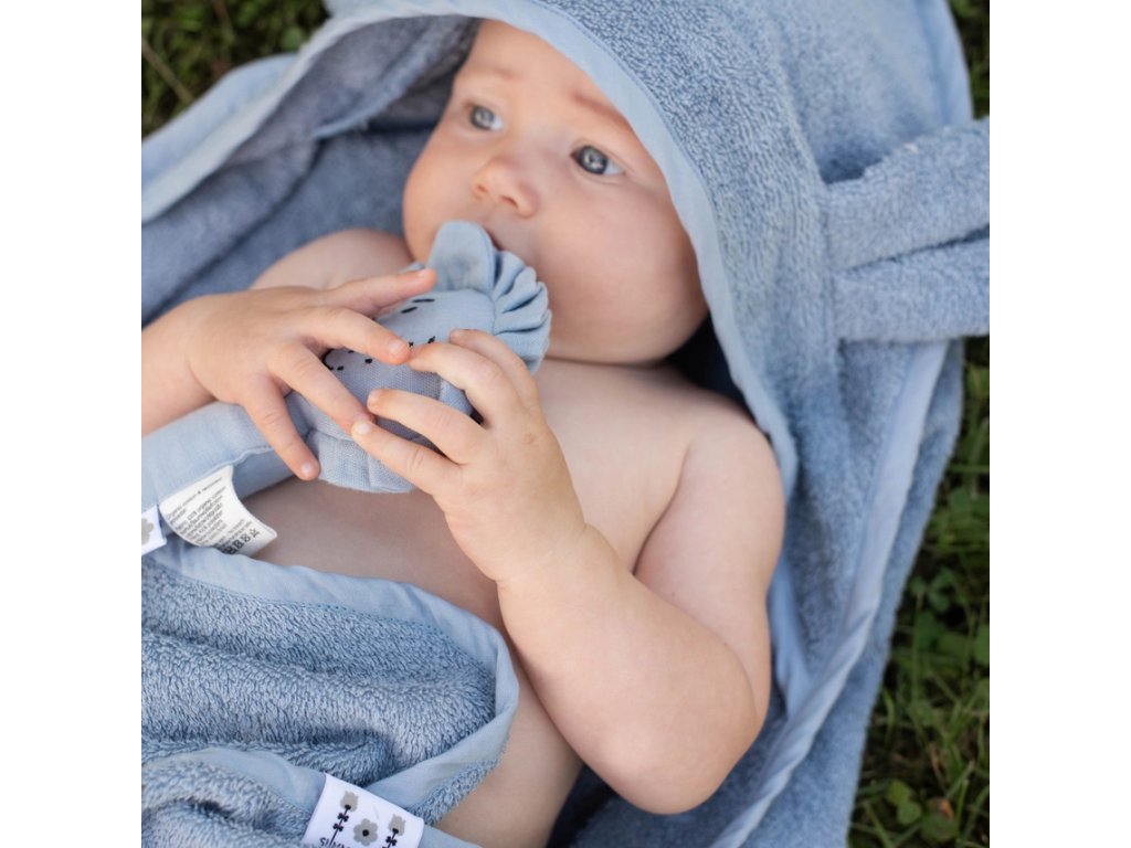 Zabaľte bábätko po kúpaní do jemnej osušky s kapucňou s uškami. Rozmer 75×75 cm poskytuje dostatok priestoru na zavinutie aj pohodlné osušenie, zatiaľ čo praktická kapucňa udrží hlavičku dieťatka v teple. Pútko na zadnej strane umožňuje jednoduché zavesenie.