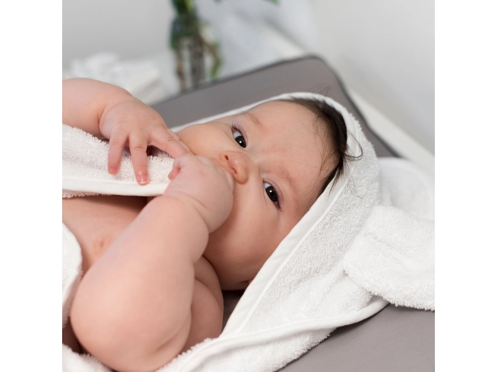 Zabaľte bábätko po kúpaní do jemnej osušky s kapucňou s uškami. Rozmer 75×75 cm poskytuje dostatok priestoru na zavinutie aj pohodlné osušenie, zatiaľ čo praktická kapucňa udrží hlavičku dieťatka v teple. Pútko na zadnej strane umožňuje jednoduché zavesenie.